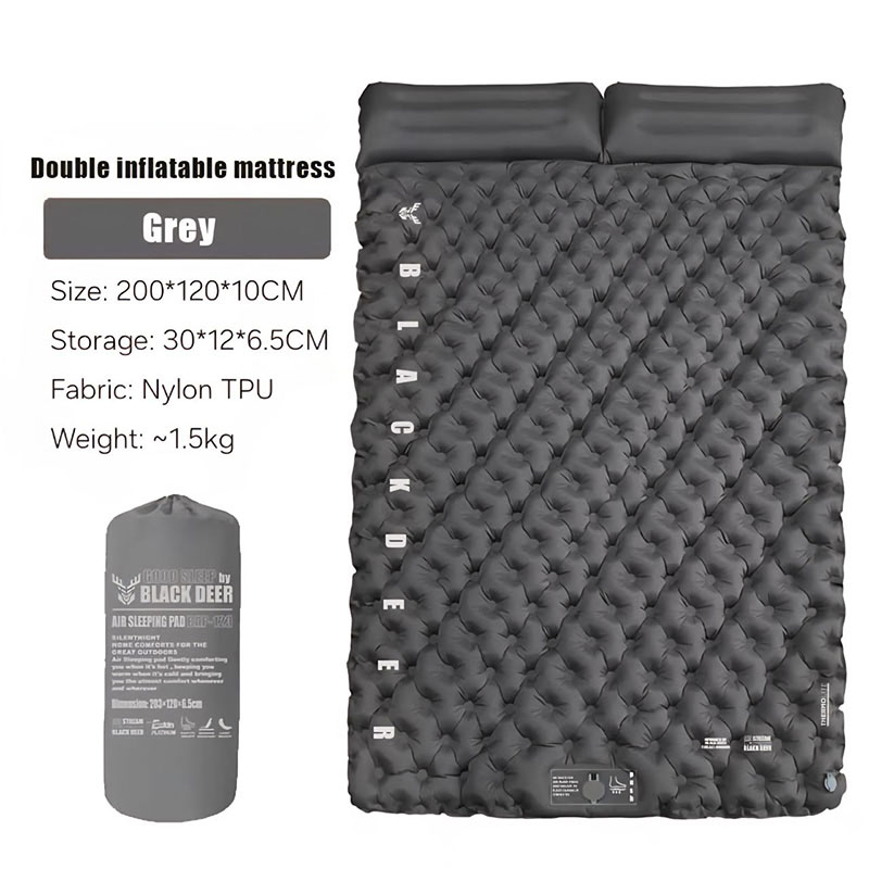 زیرانداز بادی دو نفره Black Deer مدل 123-BAP یک انتخاب حرفهای و کاربردی برای کمپینگ، طبیعتگردی، سفرهای جادهای و استفاده داخل چادر است. این محصول با طراحی ارگونومیک و ساختار اتوماتیک بادشونده، امکان استراحتی راحت، بدون نیاز به ابزار بادکننده جداگانه را فراهم میکند. پمپ پایی تعبیهشده در ساختار زیرانداز، فرایند باد شدن را در چند ثانیه و بدون زحمت انجام داده و تجربهای سریع و کاربرپسند ارائه میدهد.
